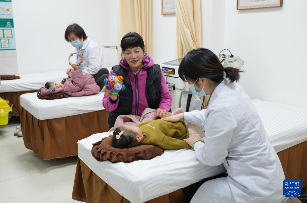 12月16日,医务人员在建德市梅城镇宝华洲未来社区智慧健康站为小朋友推拿。