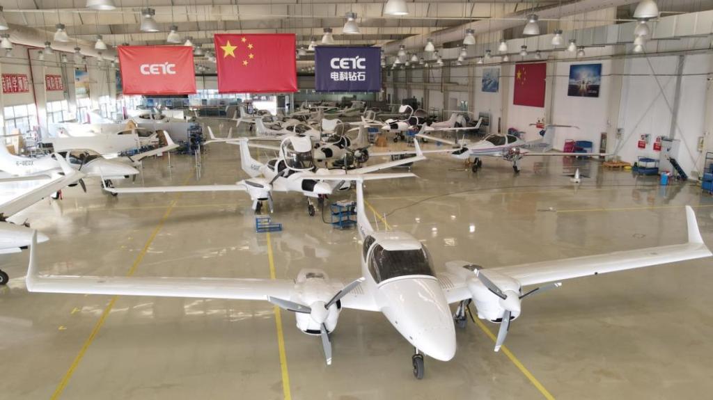 位于安徽省芜湖市湾沚区的中电科芜湖钻石飞机制造有限公司内景(2025年3月17日摄)。新华社记者 张端 摄