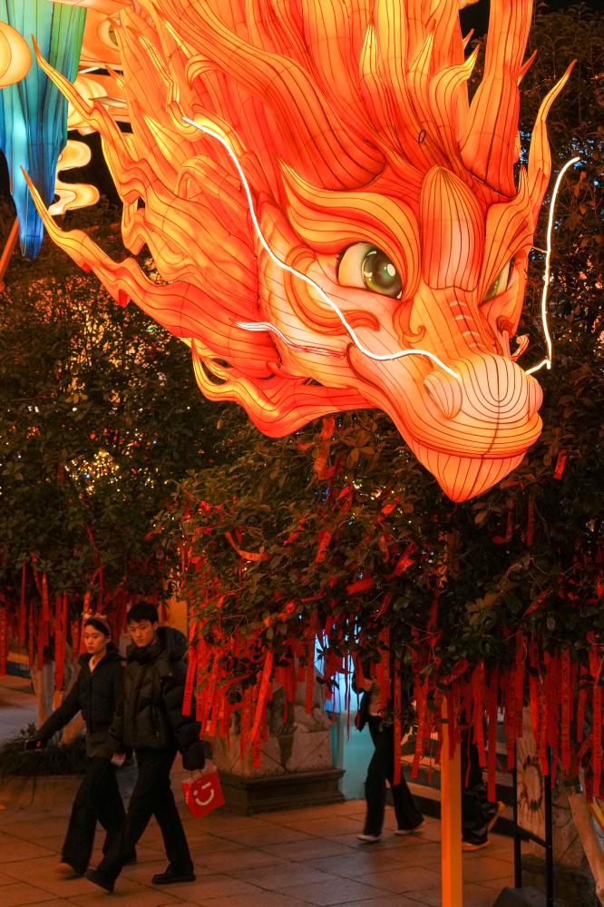 2026新年即将到来,南京市秦淮区夫子庙大成殿景点的灯彩灯组陆续点亮,为市民游客献上视觉盛宴。