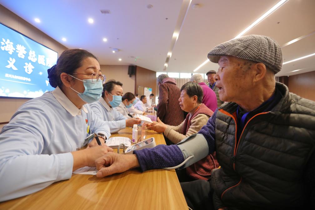 近日,因寒潮天气导致浙江省嘉兴市气温骤降,当地海警医院组织多名专家前往南湖区九如城养老院开展“应对寒潮 暖心助老”健康义诊活动,免费为老人提供咨询、科普和血压血糖检测等服务。