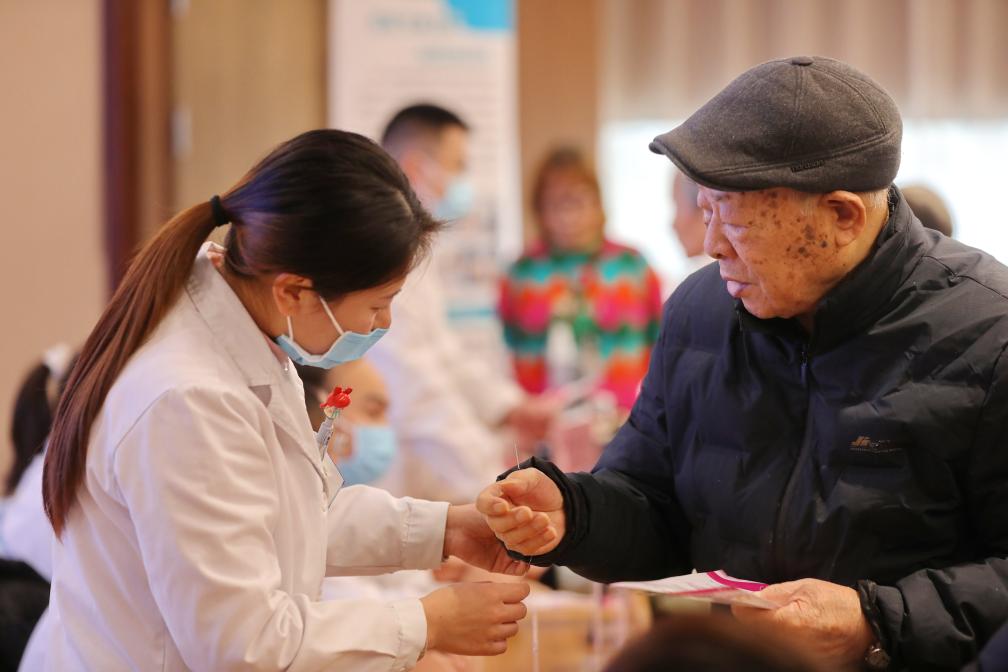 以上图片:2026年1月20日,浙江省嘉兴市南湖区海警医院医护人员前往九如城康养中心,开展“应对寒潮 暖心助老”健康义诊活动。CICPHOTO/金鹏 摄