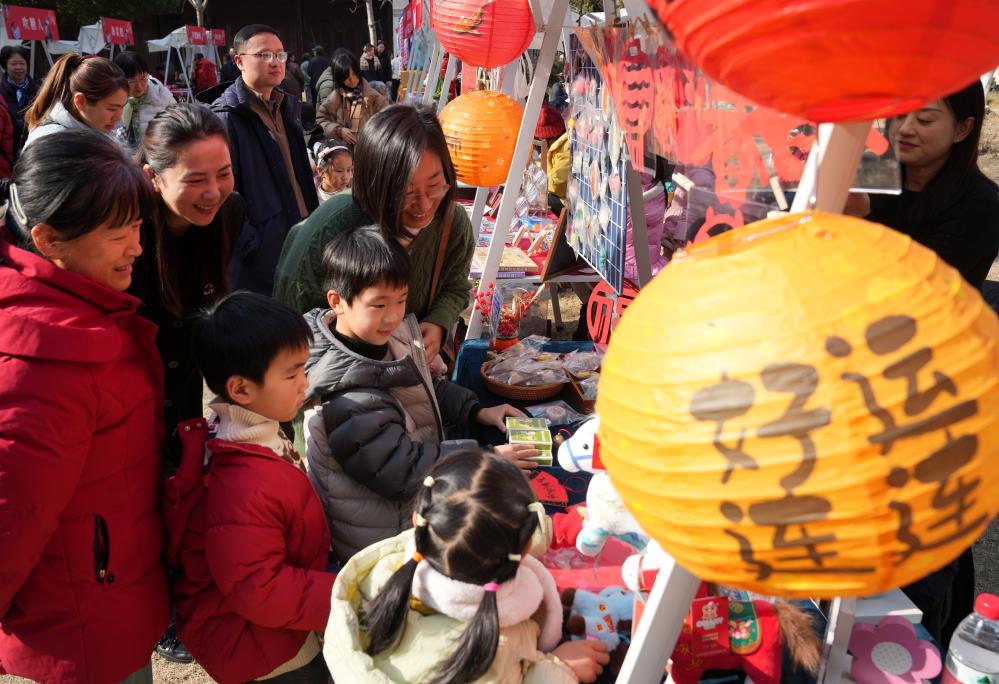 1月23日,社区居民在庙会上逛“新春市集”。