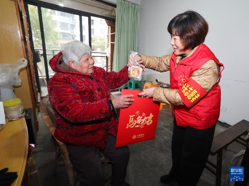 1月23日,在诸暨市陶朱街道友谊社区鸿远小区,楼道长(左)上门给高龄老人普及日常安全知识。