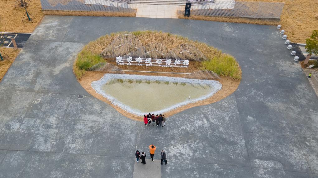 2025年12月21日,游客在凌家滩遗址博物馆外拍照留念(无人机照片)。