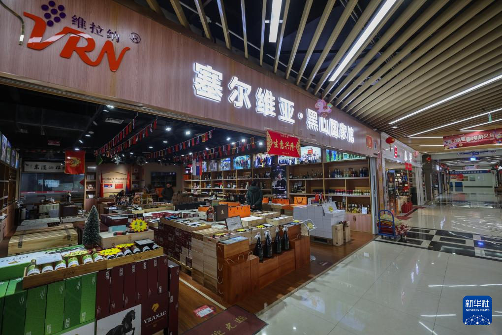 这是义乌中国进口商品城一家主营进口商品的店铺(1月30日摄)。