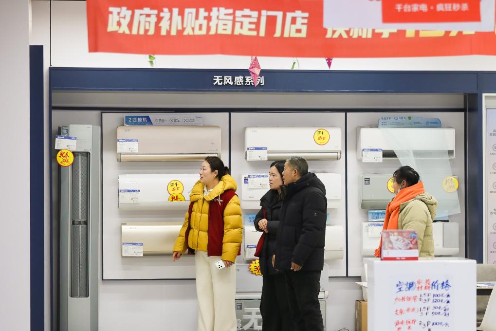 2月21日,消费者在江苏省南京市一家商场选购家电。