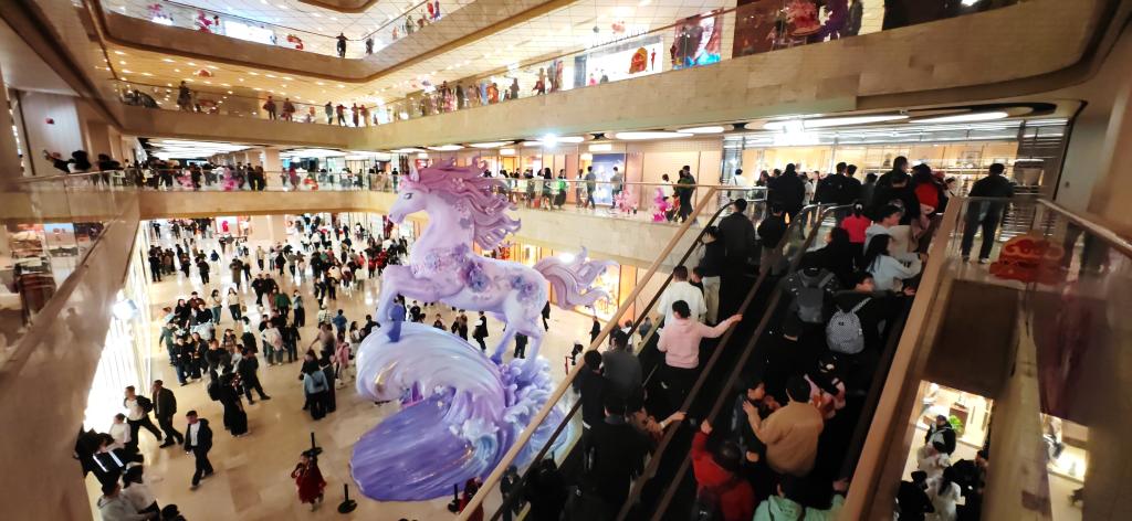正午时分,德基广场商场内人潮涌动,“逛首店、买新品”成为南京新春消费的新潮流。据德基文化艺术有限公司副总经理、德基艺术博物馆馆长艾琳介绍,春节期间,不少新品牌、新产品亮相德基,首店、首展、首秀不断刷新消费体验。假期以来,德基广场日均客流量超过30万人次,较平日增长70%以上。