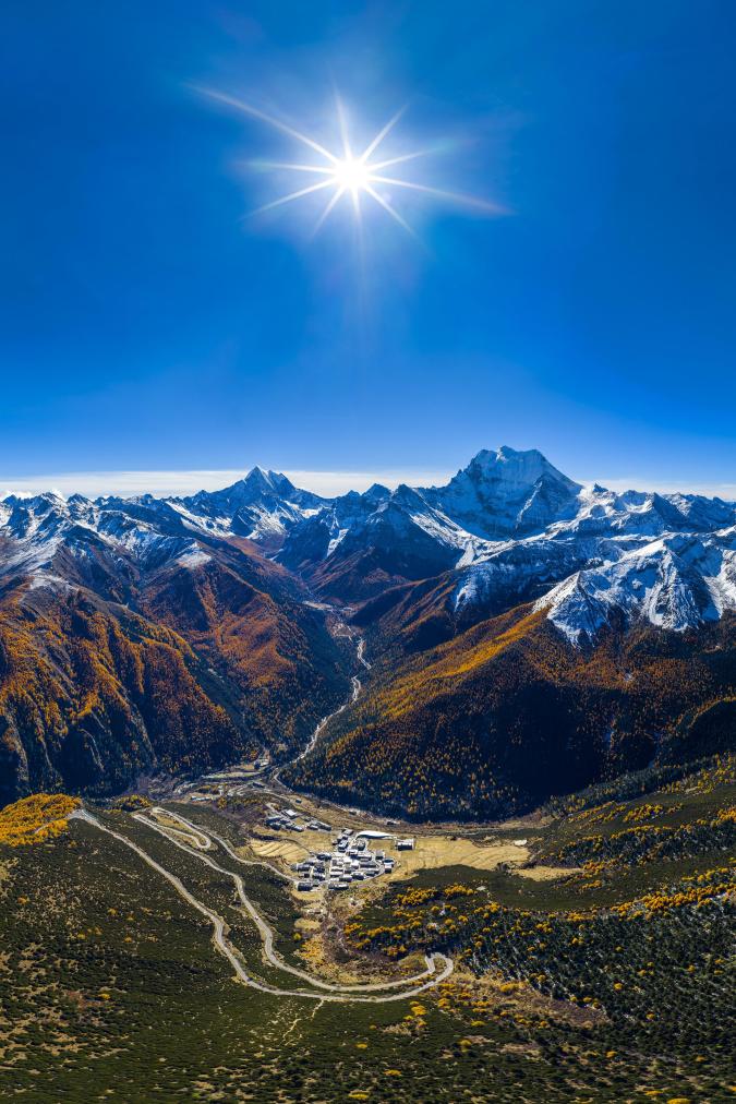 ↑这是四川省甘孜藏族自治州稻城县香格里拉镇亚丁村(无人机照片,2025年11月7日摄)。亚丁村入选第三批中国传统村落,村里一栋栋片石砌成的“黑藏房”让整个村落显得古朴厚重且充满浓郁藏韵。