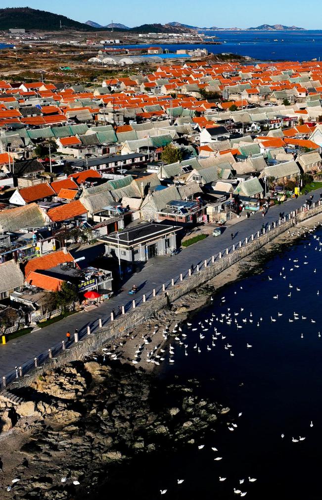 ↑这是山东省荣成市俚岛镇烟墩角村(无人机照片,2025年11月13日摄)。烟墩角村入选第三批中国传统村落,是渔家秧歌、海草房营造技艺等传统文化活态传承之地。