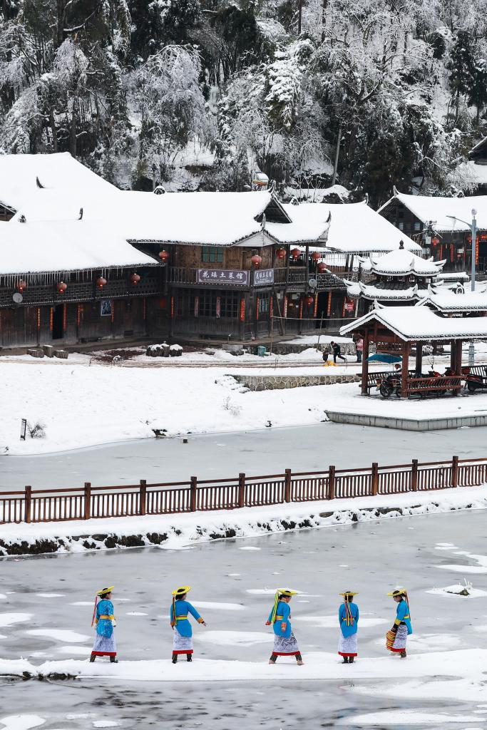 ↑这是湖南省邵阳市隆回县虎形山瑶族乡崇木凼村雪景(2022年2月3日摄)。崇木凼村入选第一批中国传统村落,是具有花瑶民族特色的村寨。