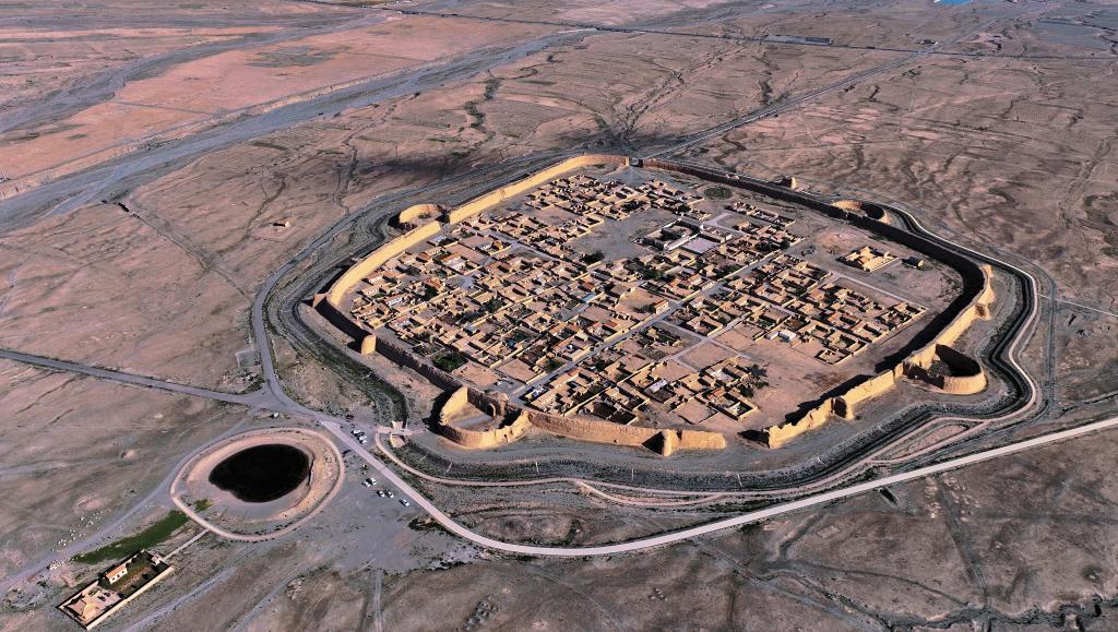 ↑这是甘肃省白银市景泰县寺滩乡永泰村(无人机照片,2023年9月摄)。永泰村入选第一批中国传统村落,其核心历史建筑永泰古城始建于明万历年间,为当时的军事要塞,因形似金龟,又名“永泰龟城”。