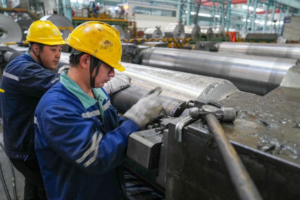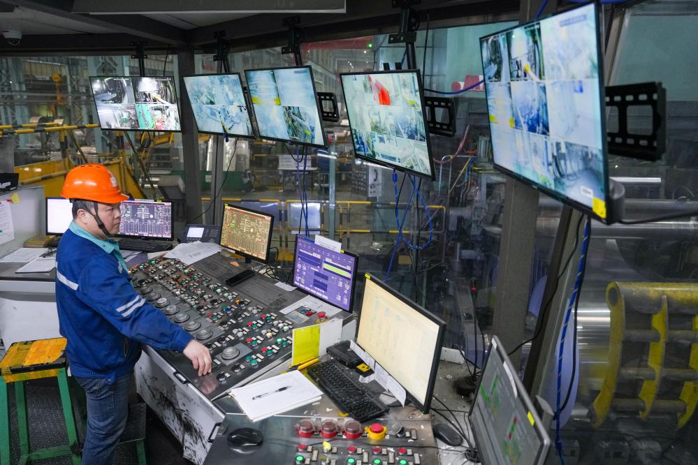 2月26日,在位于江苏省无锡市的银邦金属复合材料股份有限公司,工作人员在生产车间操作设备进行生产。