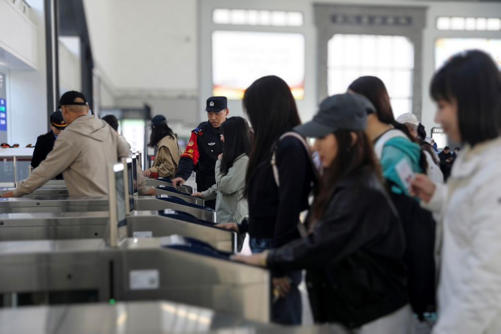 3月13日,旅客在江苏南京火车站乘车出行。