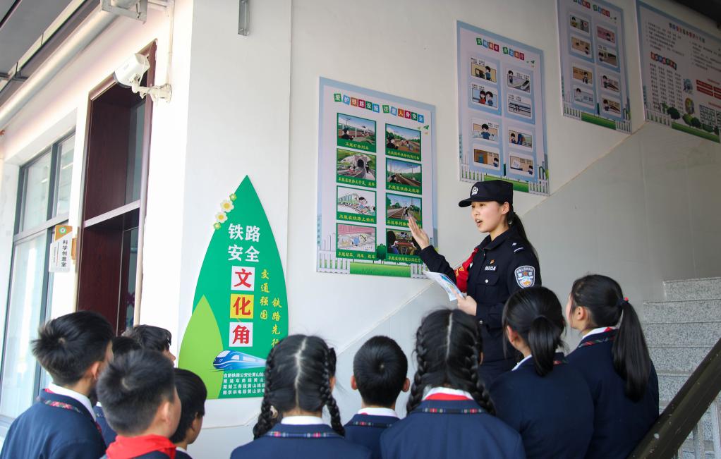 3月13日,合肥铁路公安处黄山站派出所民警在安徽省黄山市黄山育才学校开展铁路安全教育主题活动,普及铁路安全知识,提高师生的安全防范和自我保护意识。