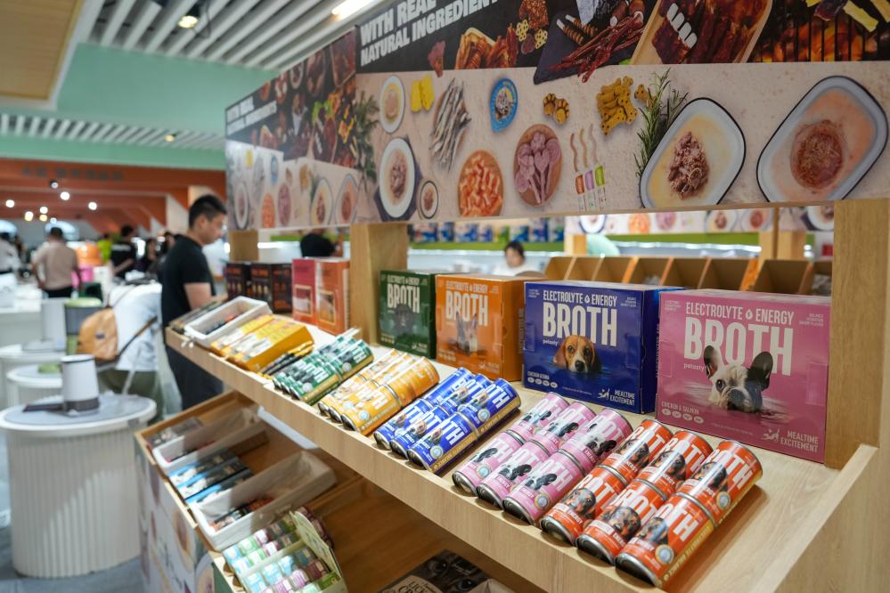 在江苏省盐城市一家宠物用品企业的展厅内,观众参观各种宠物用品(2025年9月17日摄)。