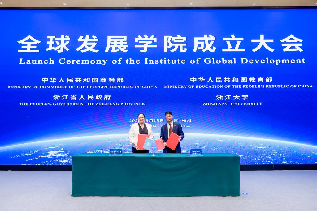 在当天举行的全球发展学院成立大会暨全球发展研讨会上,浙江大学与联合国人口基金签署谅解备忘录,双方将围绕人口与发展等重点议题开展联合研究,共建全球协作平台。