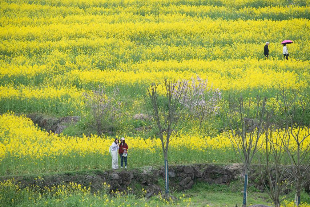 3月22日,游客在幸福村梅干岭油菜花田赏花。