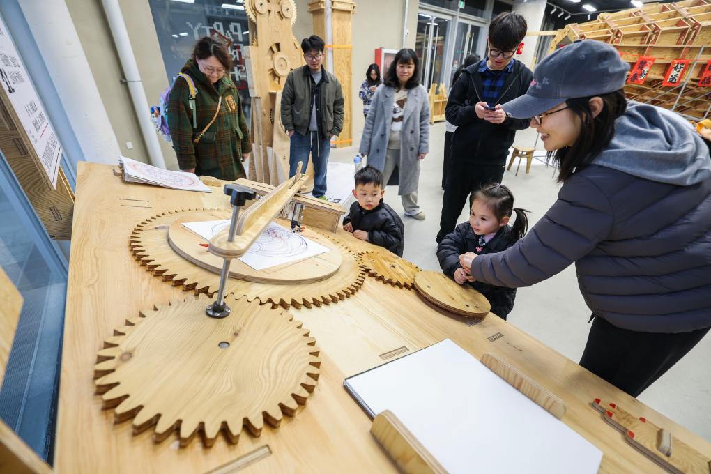 3月24日,游客在嘉兴市南湖区“翼时空·嘉兴1921”的木制手作空间内体验。