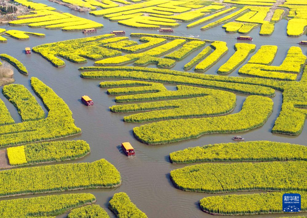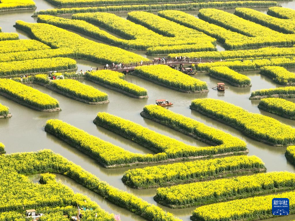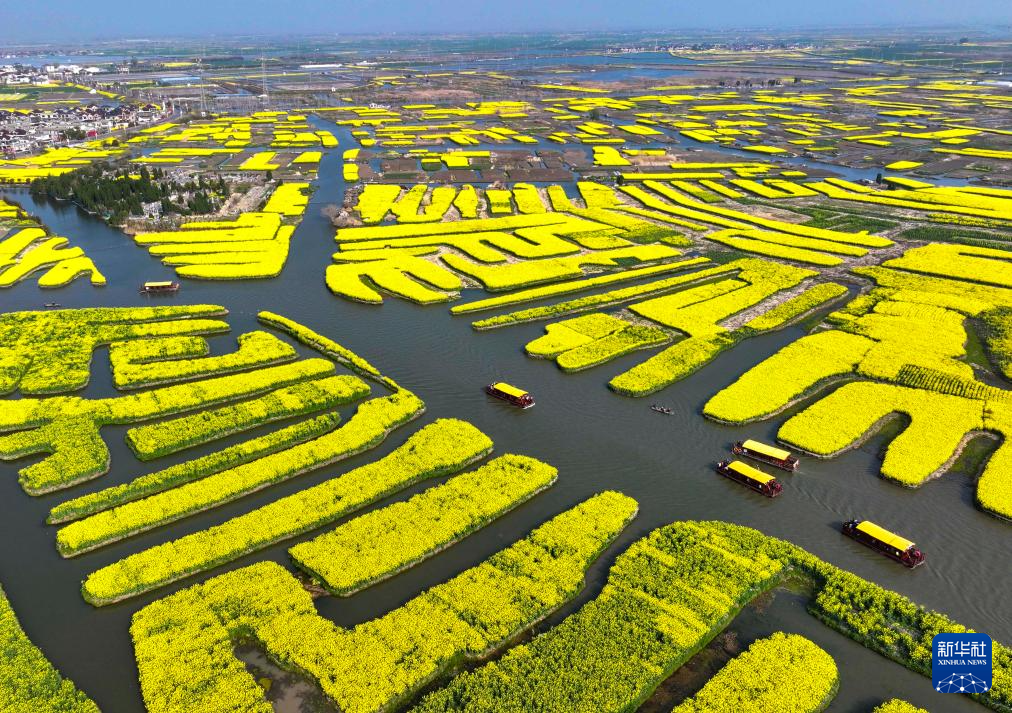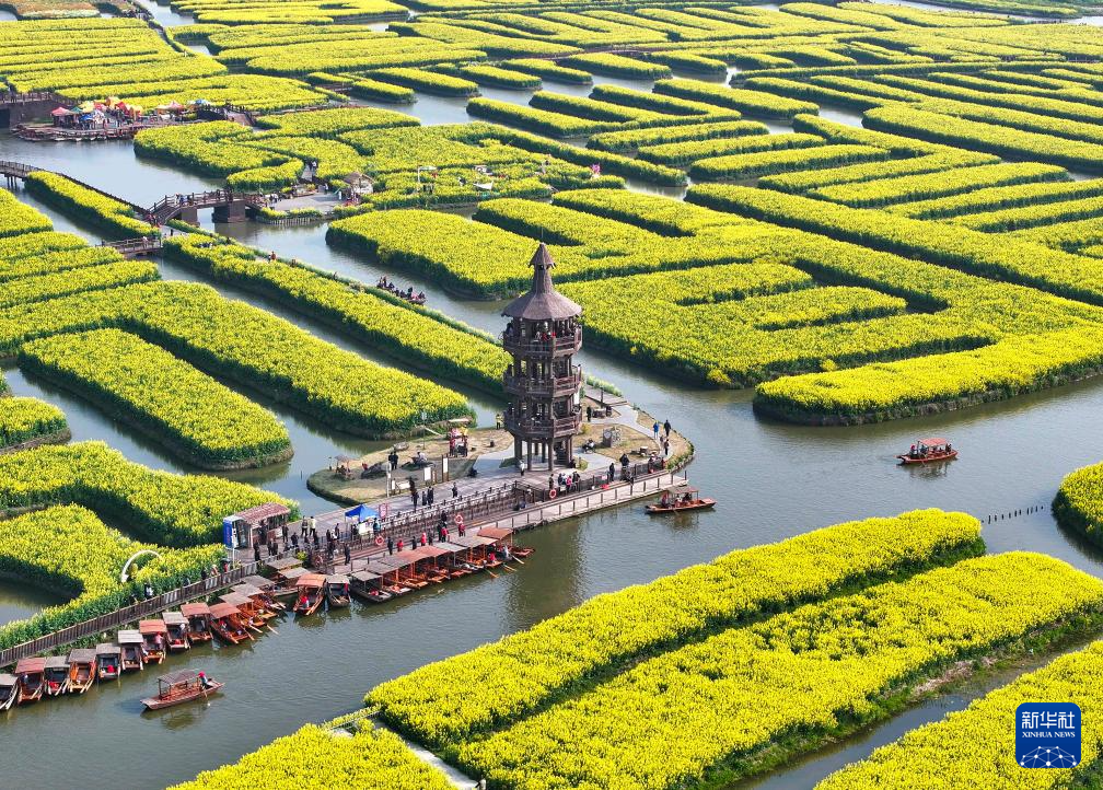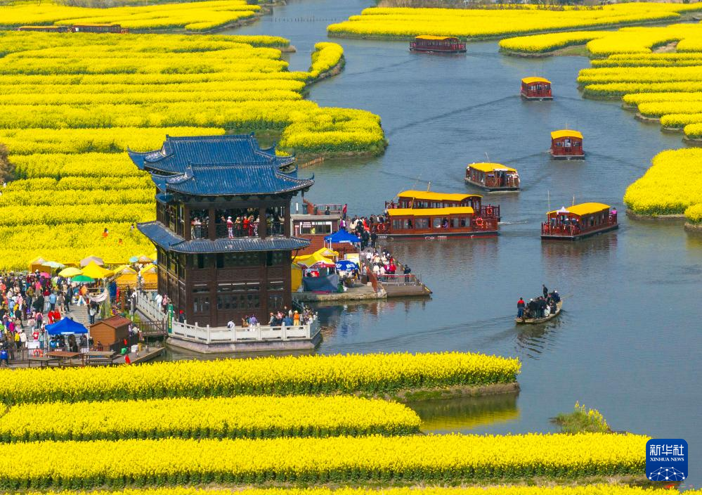时下,江苏省兴化市千垛景区的油菜花进入盛花期,吸引众多市民游客前来踏青赏花,放松身心。