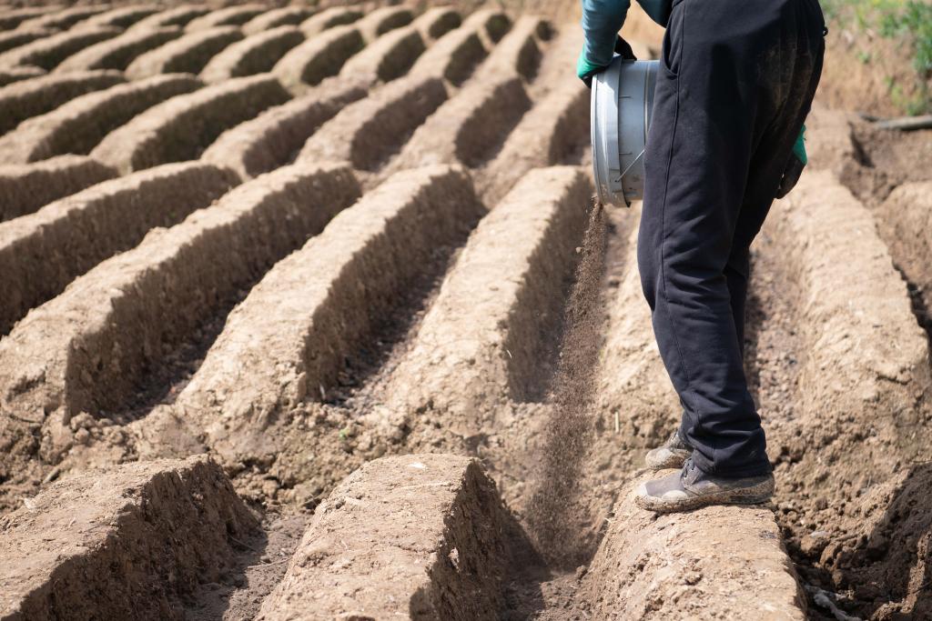 4月5日,在安徽省铜陵市郊区大通镇大院村,农民在姜田里施肥。