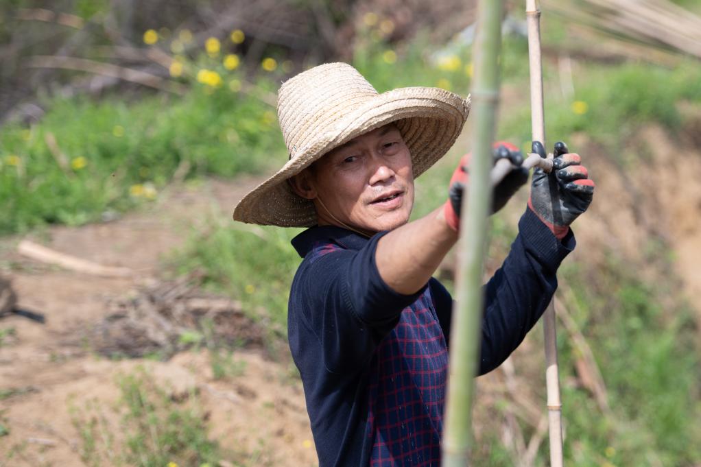 4月5日,在安徽省铜陵市郊区大通镇大院村,农民给种下的铜陵白姜搭建姜棚。