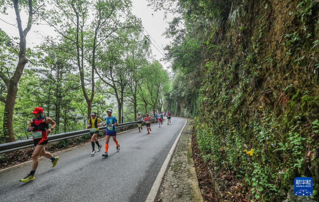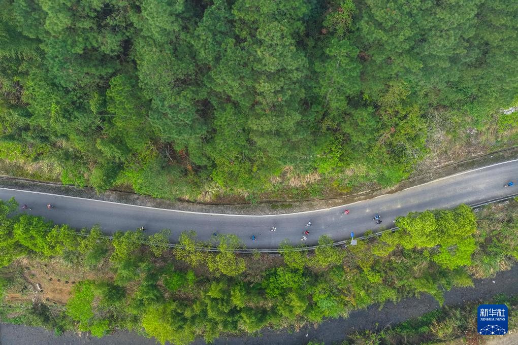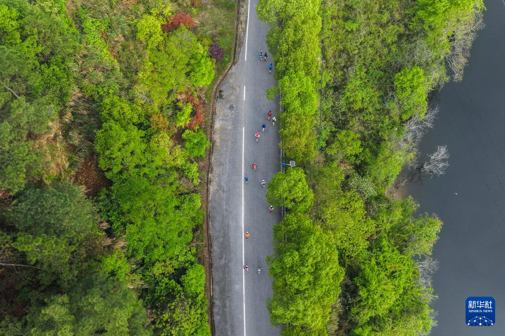 4月19日,选手们奔跑在山野间(无人机照片)。