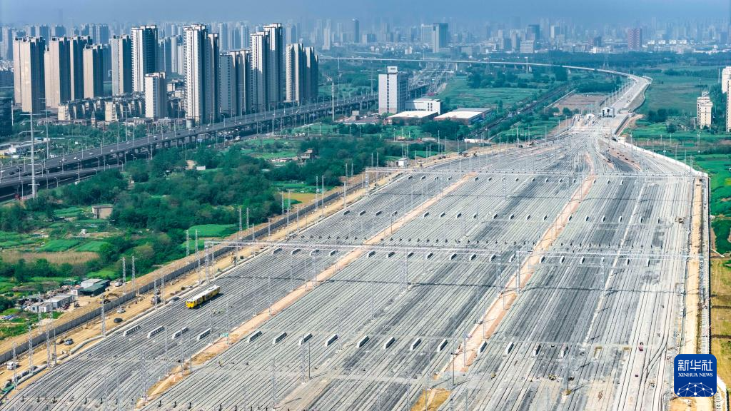 这是4月19日拍摄的安徽合肥动车运用所建设现场(无人机照片)。