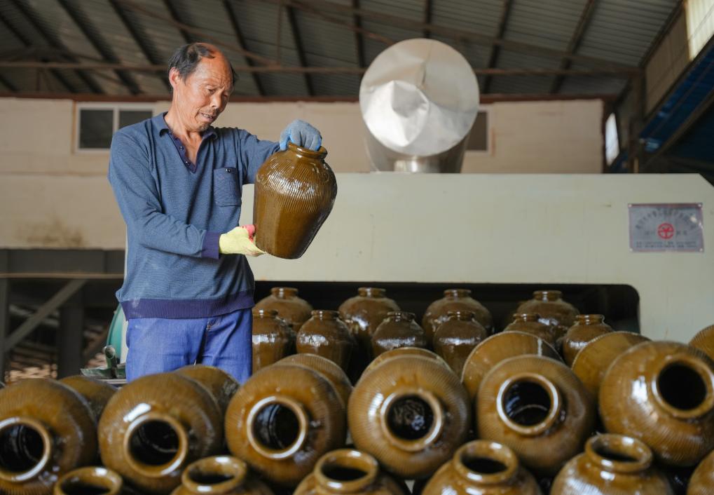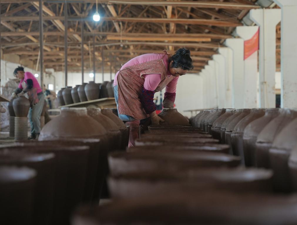 近日,在浙江省湖州市长兴县小浦镇高地村一处手工作坊内,工人们在赶制一批酒缸、泡菜坛,从揉泥塑形到修坯晾晒有序推进,让传统老手艺产销两旺。